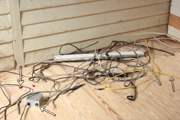 Crazy, right?!?! Seems as though through the years the owners just cut out old wires, but never removed them. Goodness!!