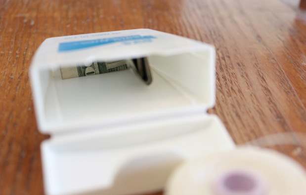 No problem. Just use a second, empty dental floss container for your cash. I promise no thief will say, “Hey, wait a minute…. TWO dental flosses?? I’d better investigate further…”