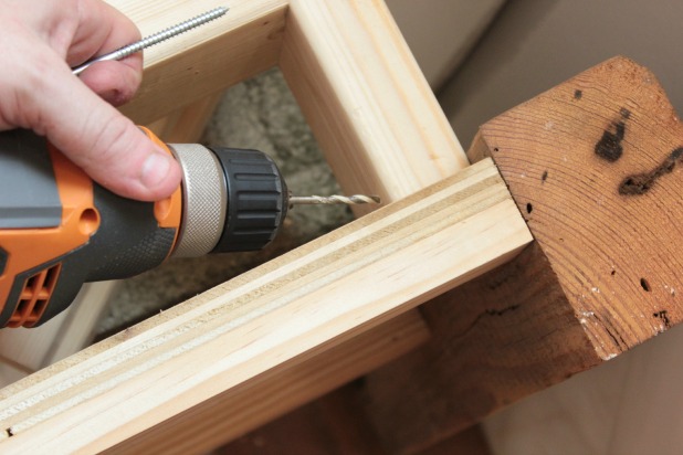 diy wood frame bed pilot holesI know I haven’t really given any instruction or info on the Kreg Jig Jr. Truth is, I’ve had the tool for over a year and this is the first project I’ve used it on and am still getting the hang of it myself. With some fun ideas we’re working on for the house I’m hoping to use it a lot more and give you all the how-tos.